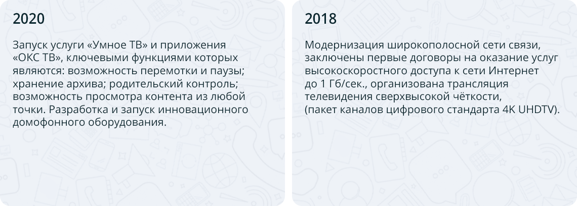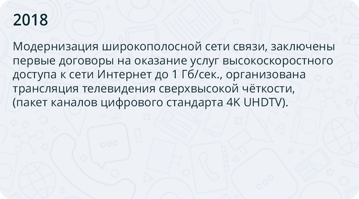 и модернизируем оптоволоконные сети, подключаем микрорайоны и социальные учреждения.