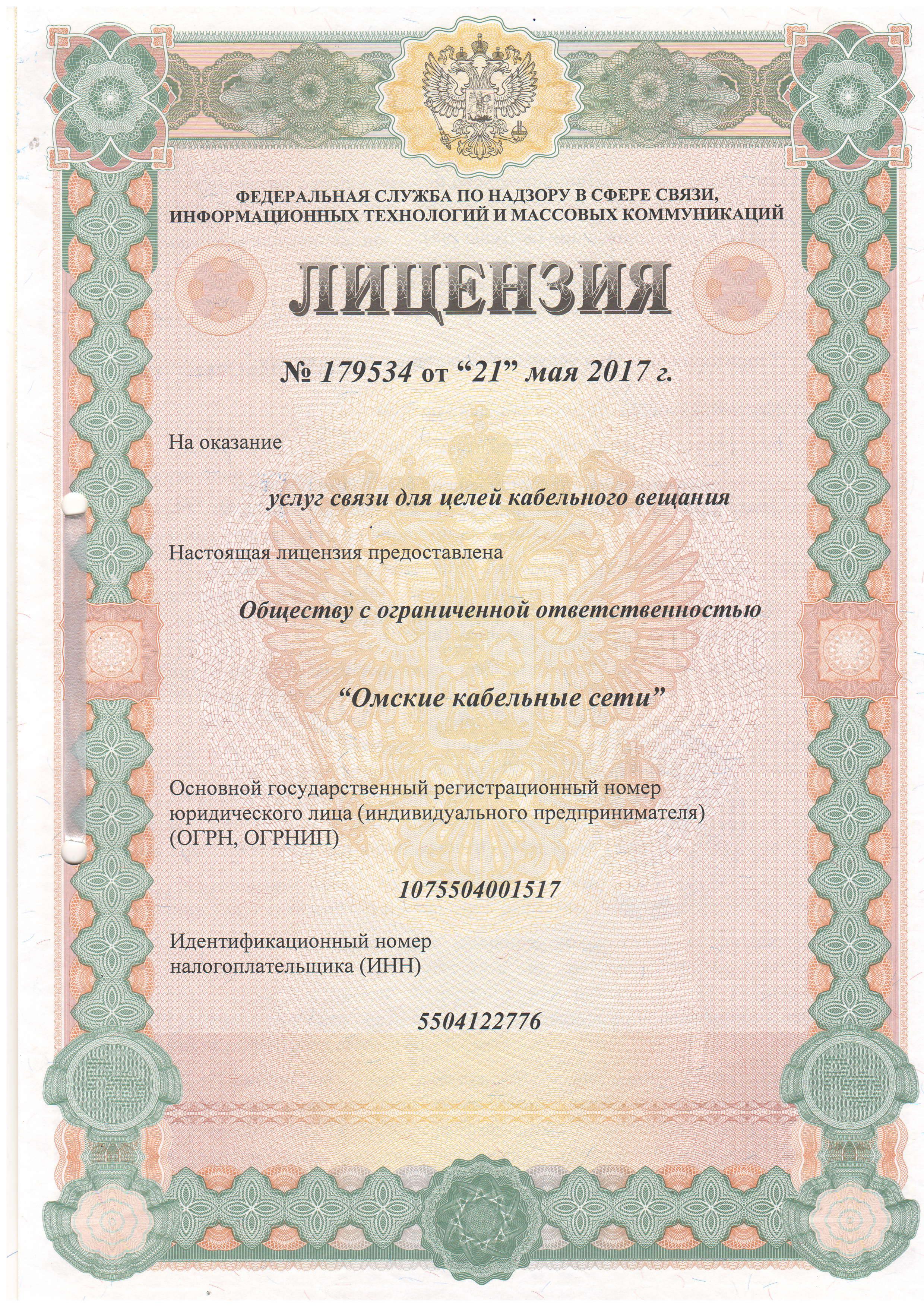 Услуги связи для целей кабельного вещания